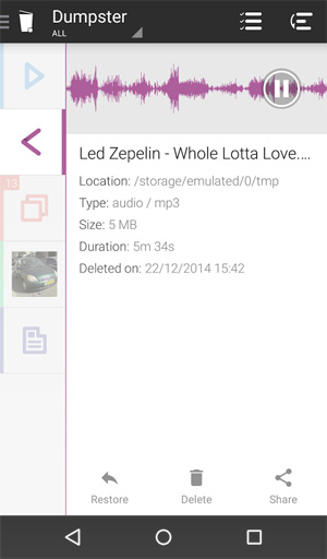 That’s it, Dumpster is now all configured to save all the items that are deleted from your device. Next time if you accidentally delete your files, just go the the Dumpster app and if you want to restore a deleted item, simply select it and tap the ‘Restore’ button to restore it.
