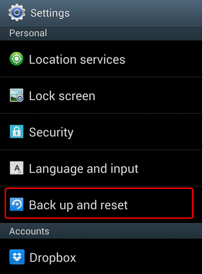 - Depending on which version of your Android device is running or manufacturer (Samsung, HTC, LG, etc.), the Factory Reset option may reside in one of many sections within the Settings. In Samsung Galaxy S3, the option is located under ‘Personal’ section.