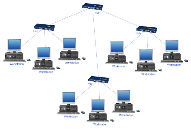 In the computer networking world the most commonly used topology in LAN is the star topology. Star topologies can be implemented in home, offices or even in a building. All the computers in the star topologies are connected to central devices like hub, switch or router. The functionality of all these devices is different. I have covered the detail of each networking devices in the separate portion of my website. Computers in a network are usually connected with the hub, switch or router with the Unshielded Twisted Pair (UTP) or Shielded Twisted Pair Cables.